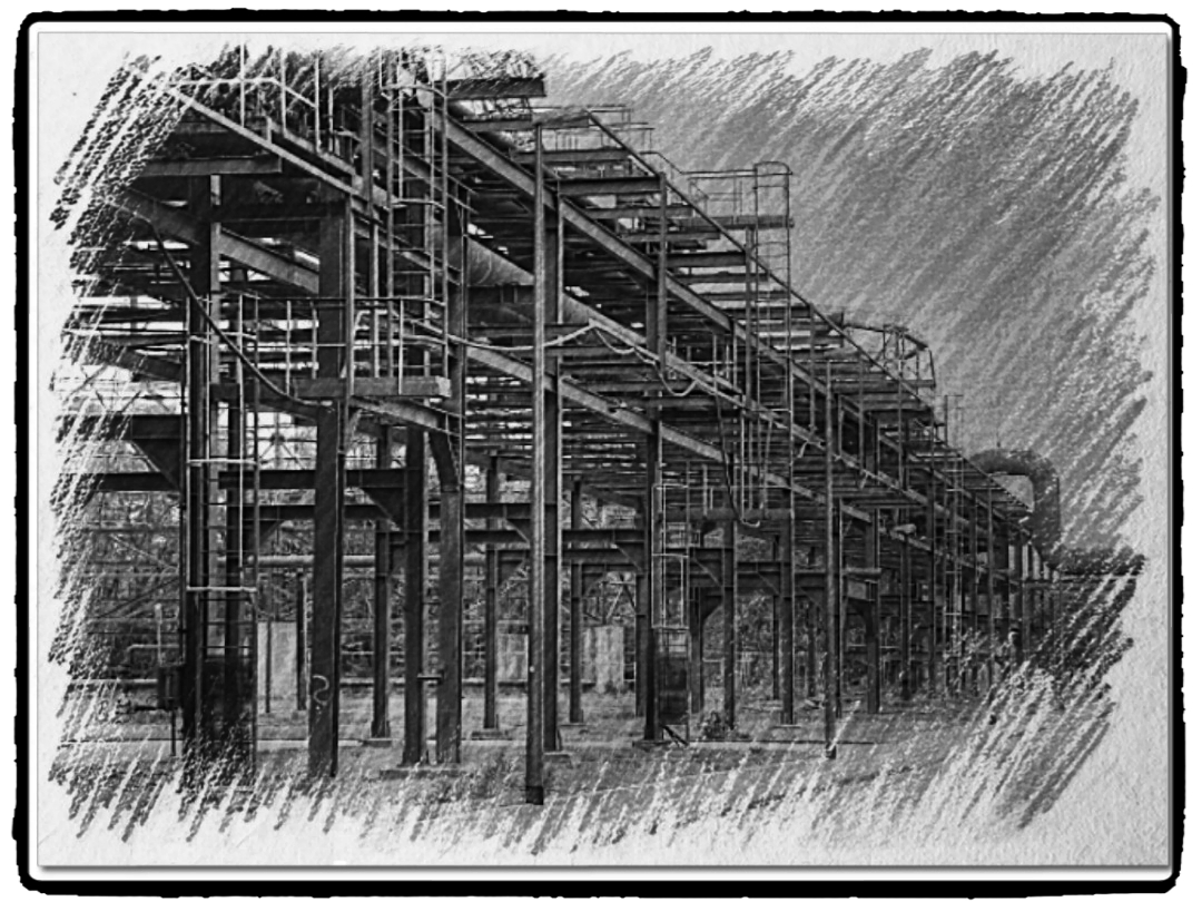 Kokerei Zollverein, Essen...weiße Seite...05.2017...gemalt..s/w...IV.